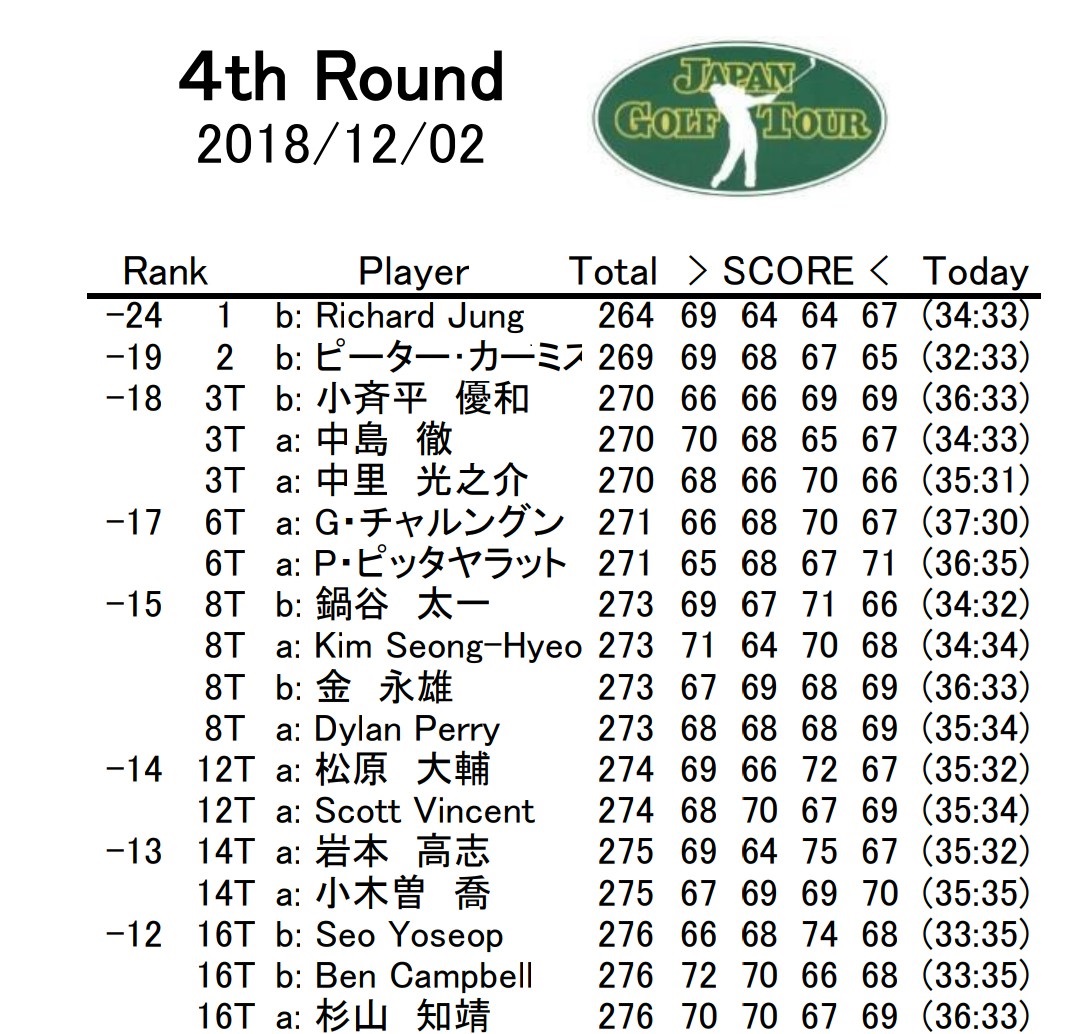 昨日の日本シリーズで今シーズンの男子ツアーも終了しました