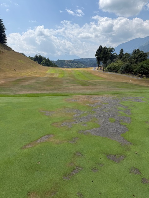この前、久々に行ったらコースが猛暑と水不足で大変なことになっていました。