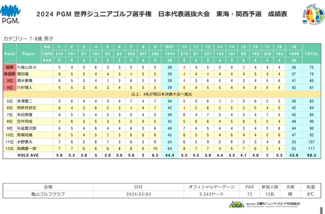 「2024PGM世界ジュニアゴルフ選手権日本代表選抜大会」の東海